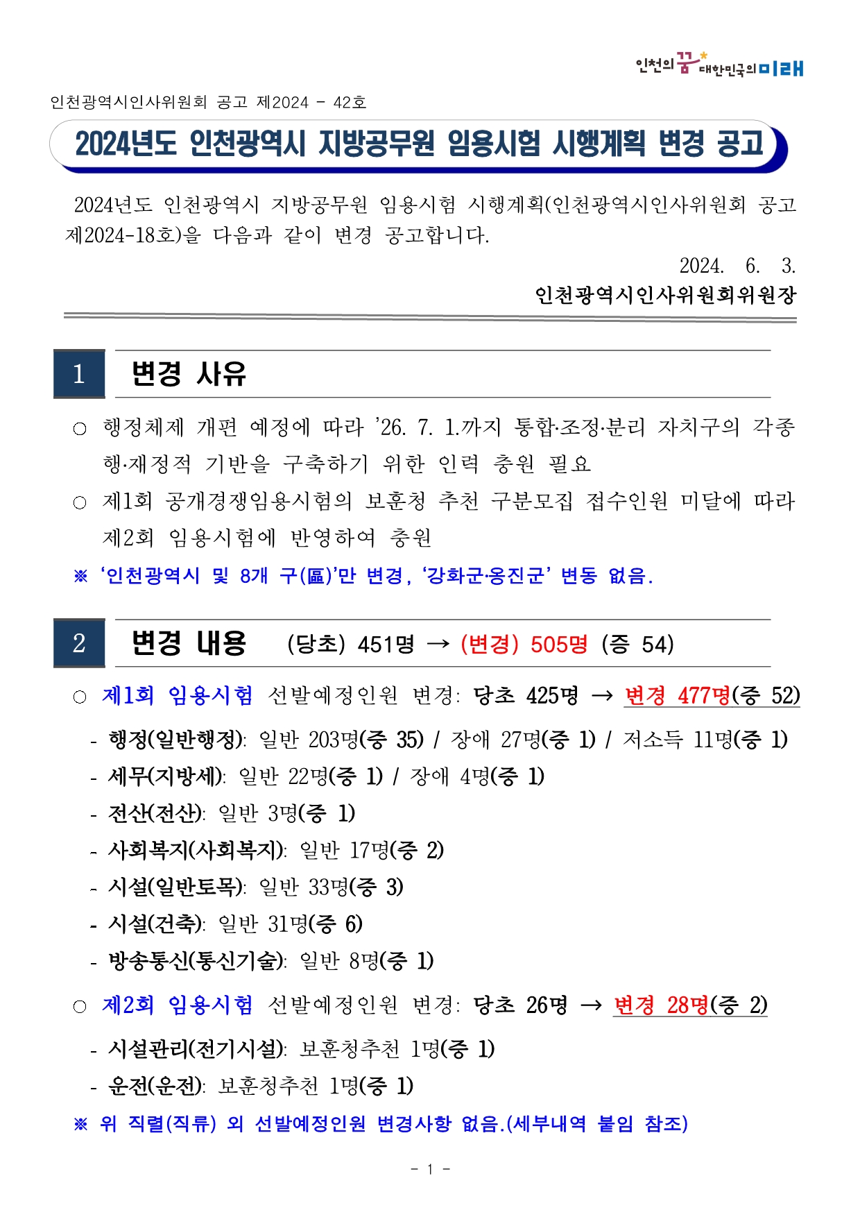 (변경 공고문)2024년도 인천광역시 지방공무원 임용시험 시행계획 변경 공고.hwp