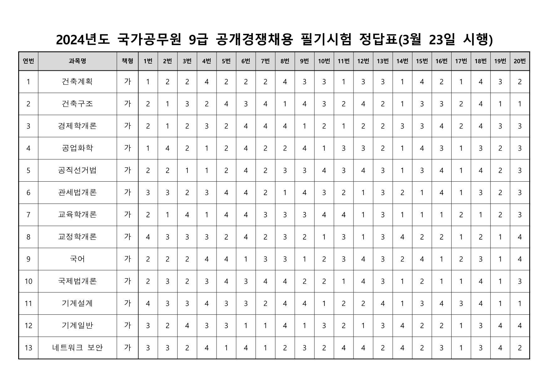 2024년도 국가공무원 9급 공개경쟁채용 필기시험 정답가인(PDF파일).pdf