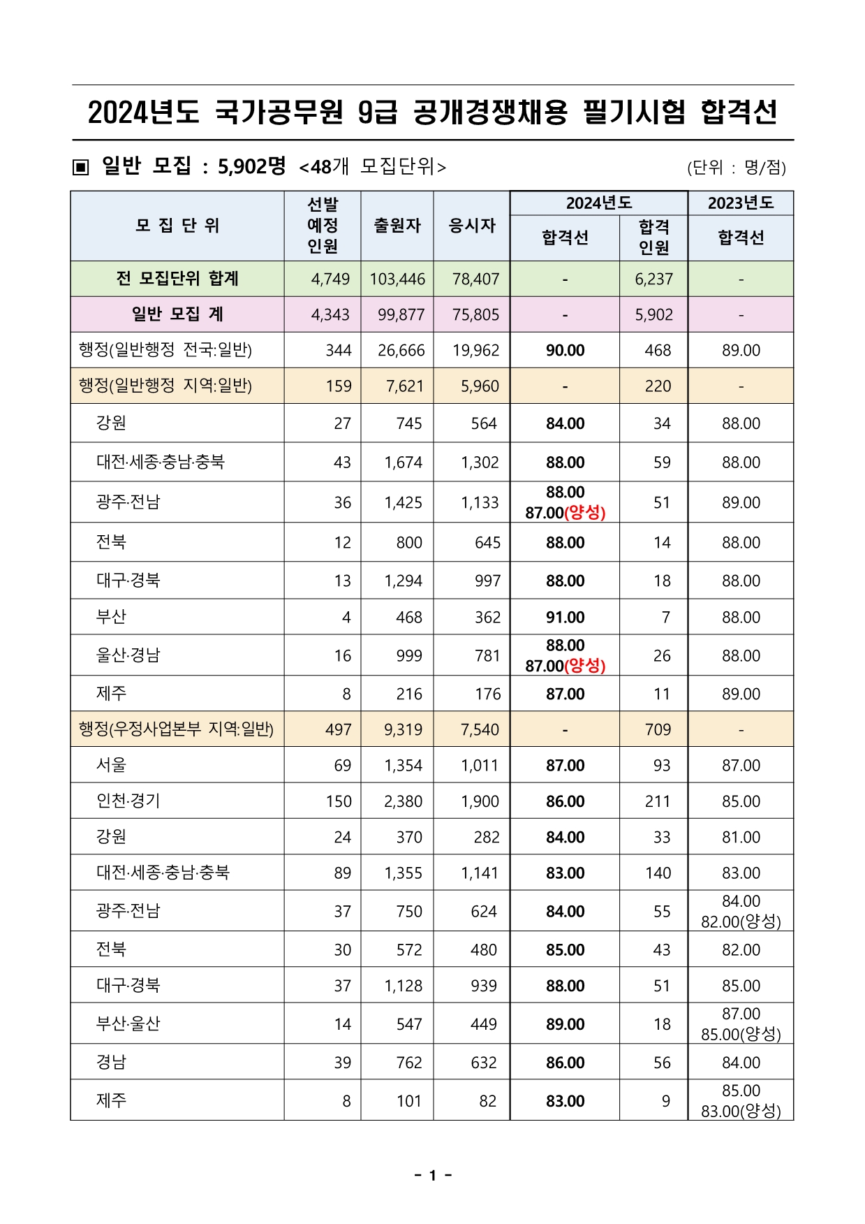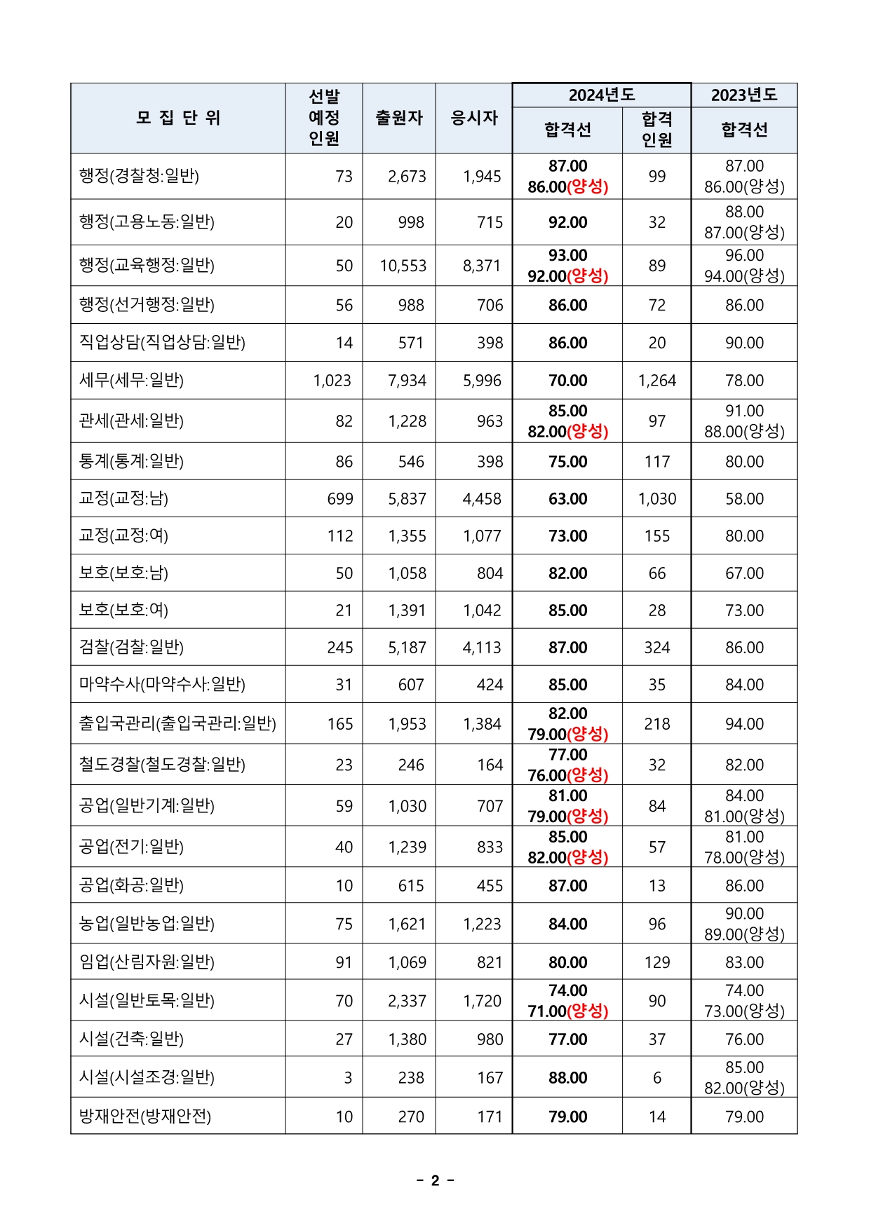 공무원 시험 공고&경쟁률&합격선(2019~2024)