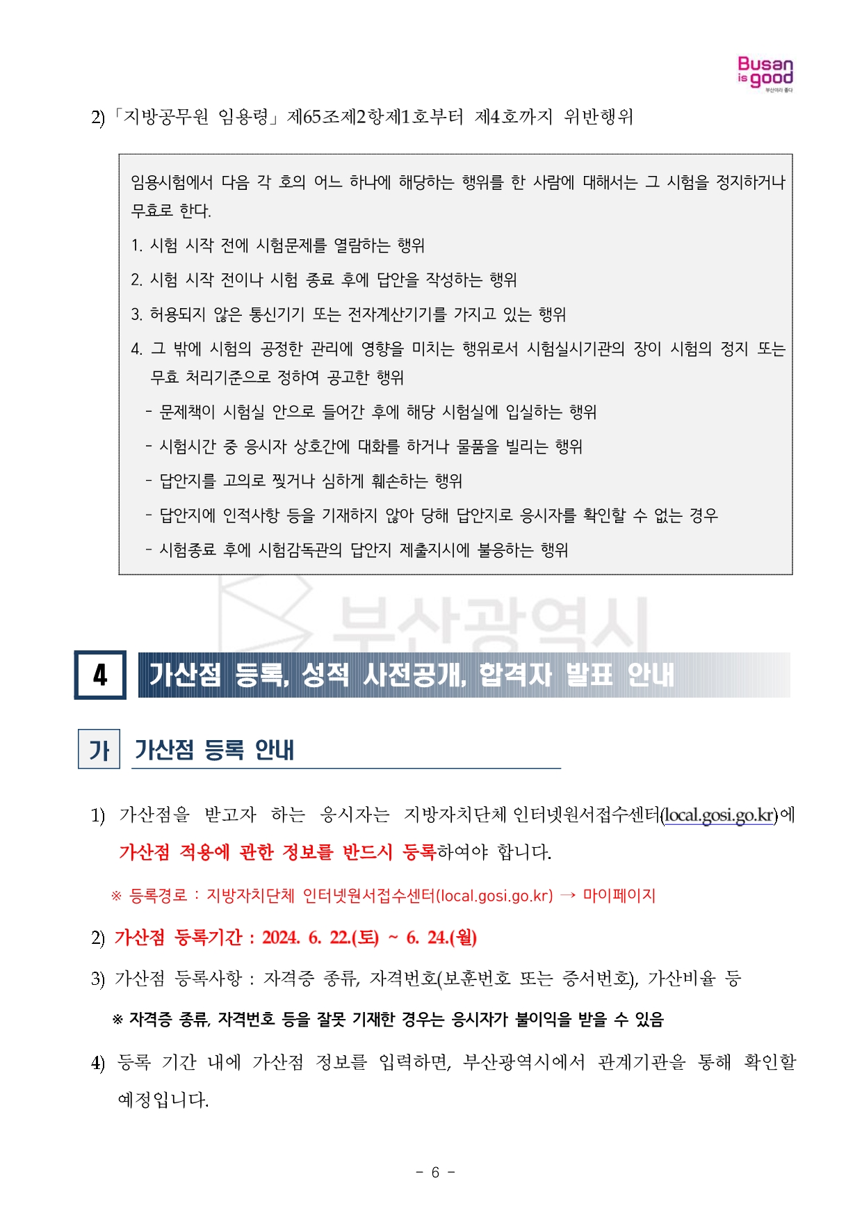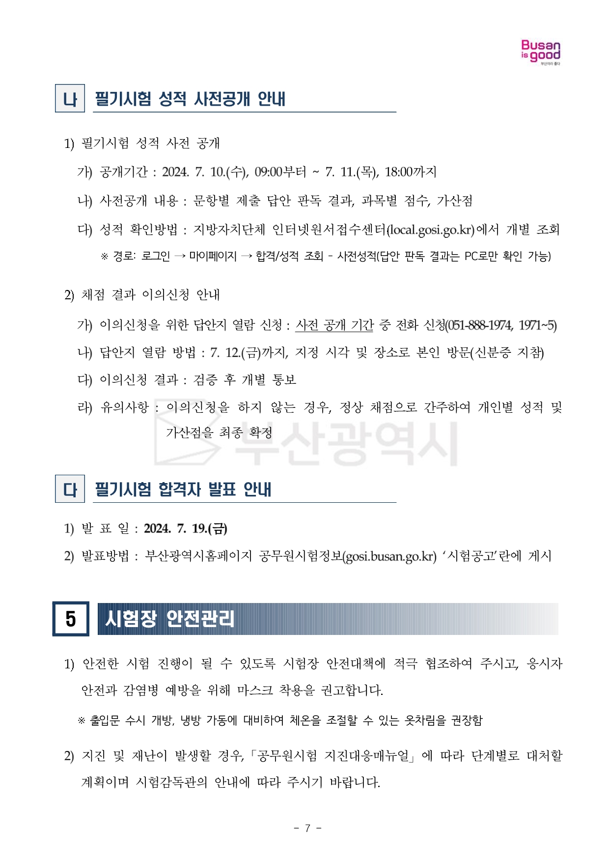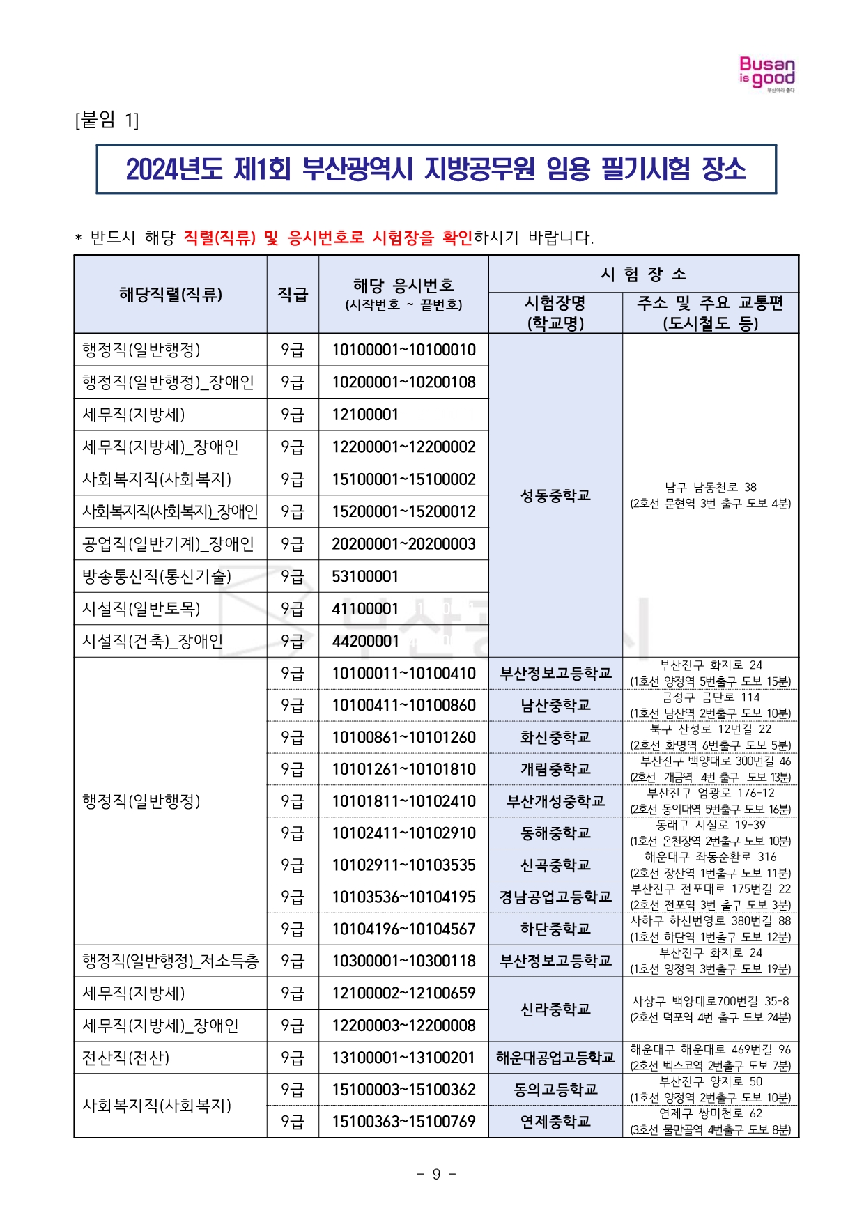 2024년도 제1회 부산광역시 지방공무원임용 필기시험 장소 및 응시자 준수사항 공고문(게시).hwp