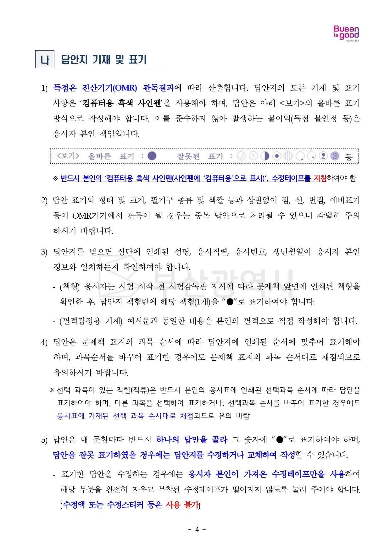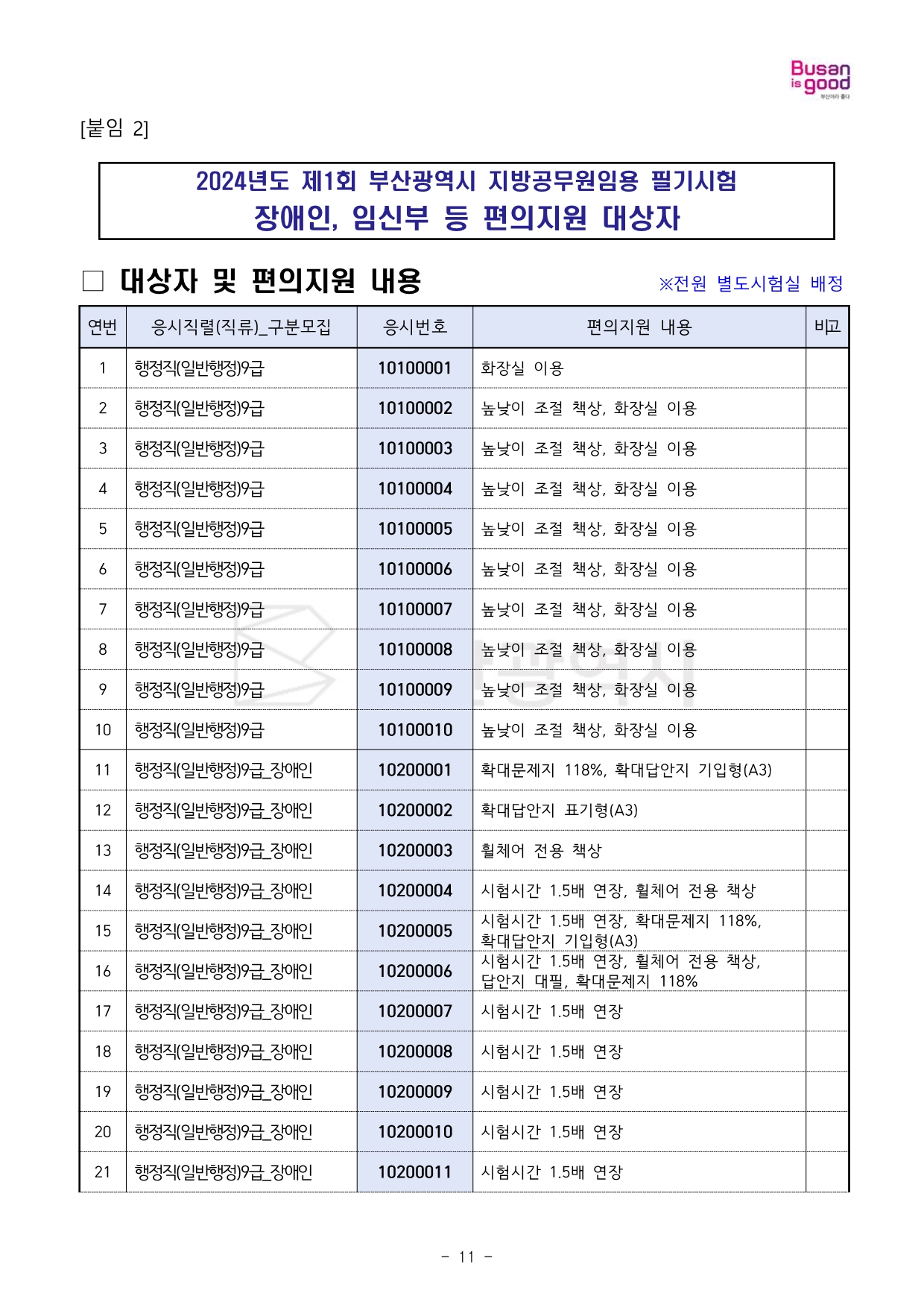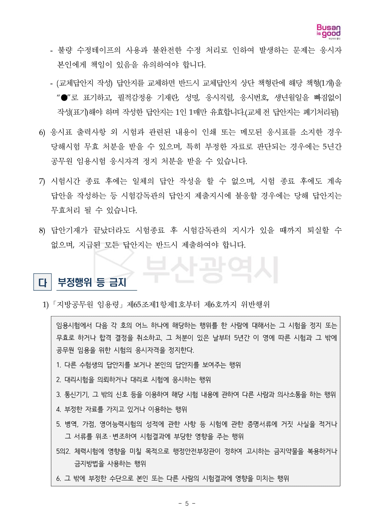 2024년도 제1회 부산광역시 지방공무원임용 필기시험 장소 및 응시자 준수사항 공고문(게시).hwp