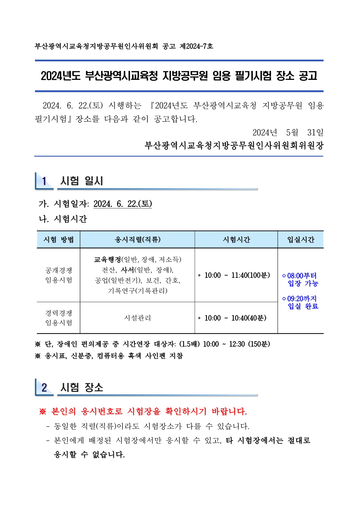 ★2024년도 부산광역시교육청 지방공무원 임용 필기시험 장소 공고문.pdf