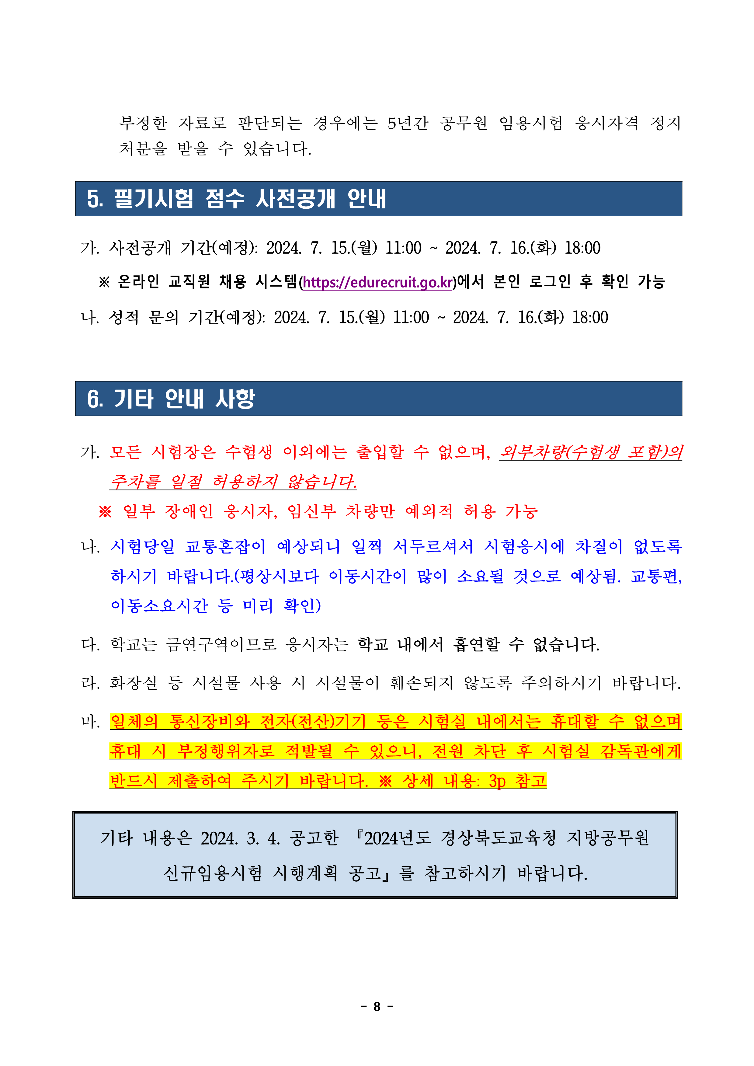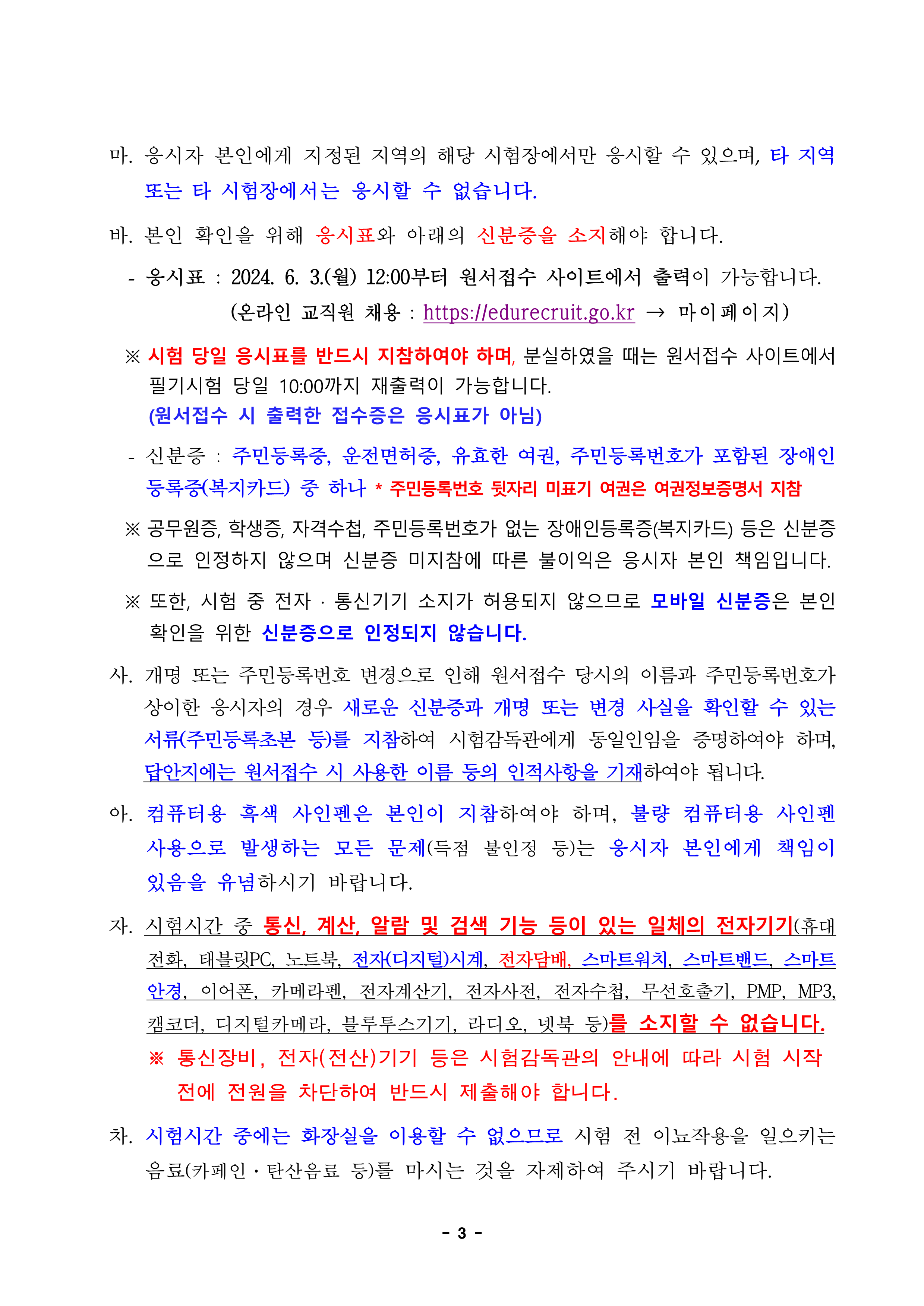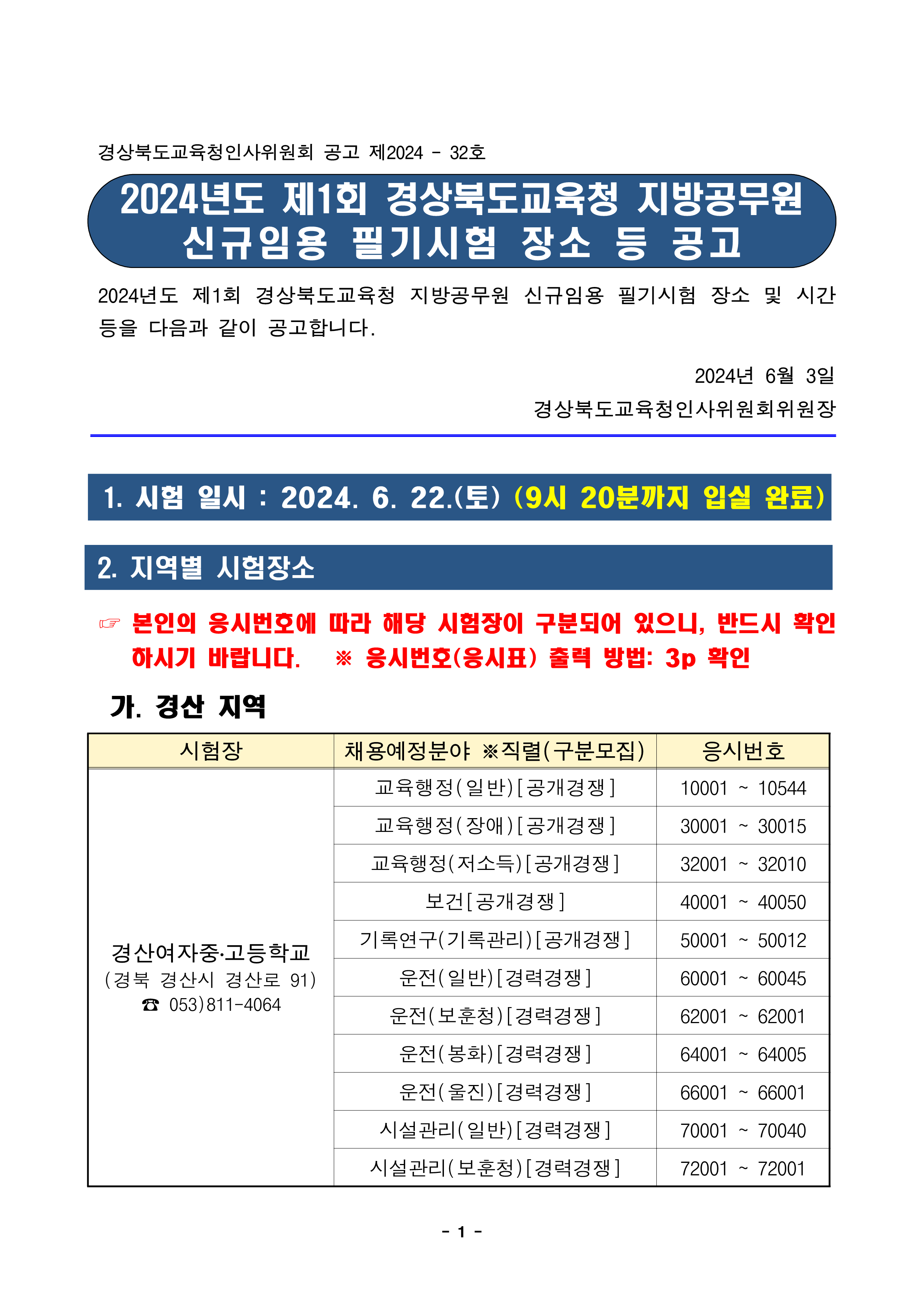 2024년도 경상북도교육청 지방공무원 임용 필기시험 장소 등 공고(06.03. 1012).hwp