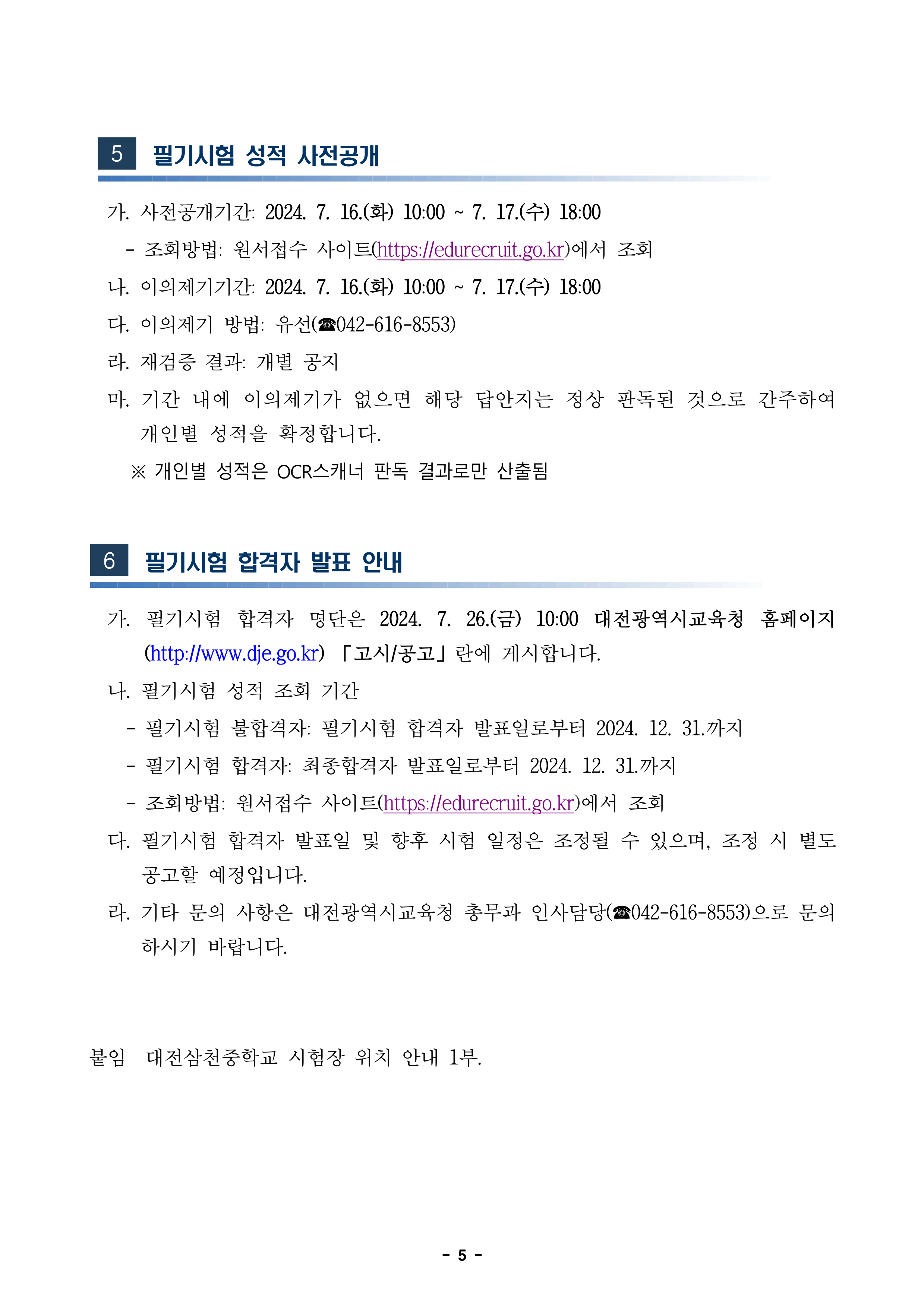 2024년도+제1회+대전광역시교육청+지방공무원+임용+필기시험+시간+및+장소+공고.hwp