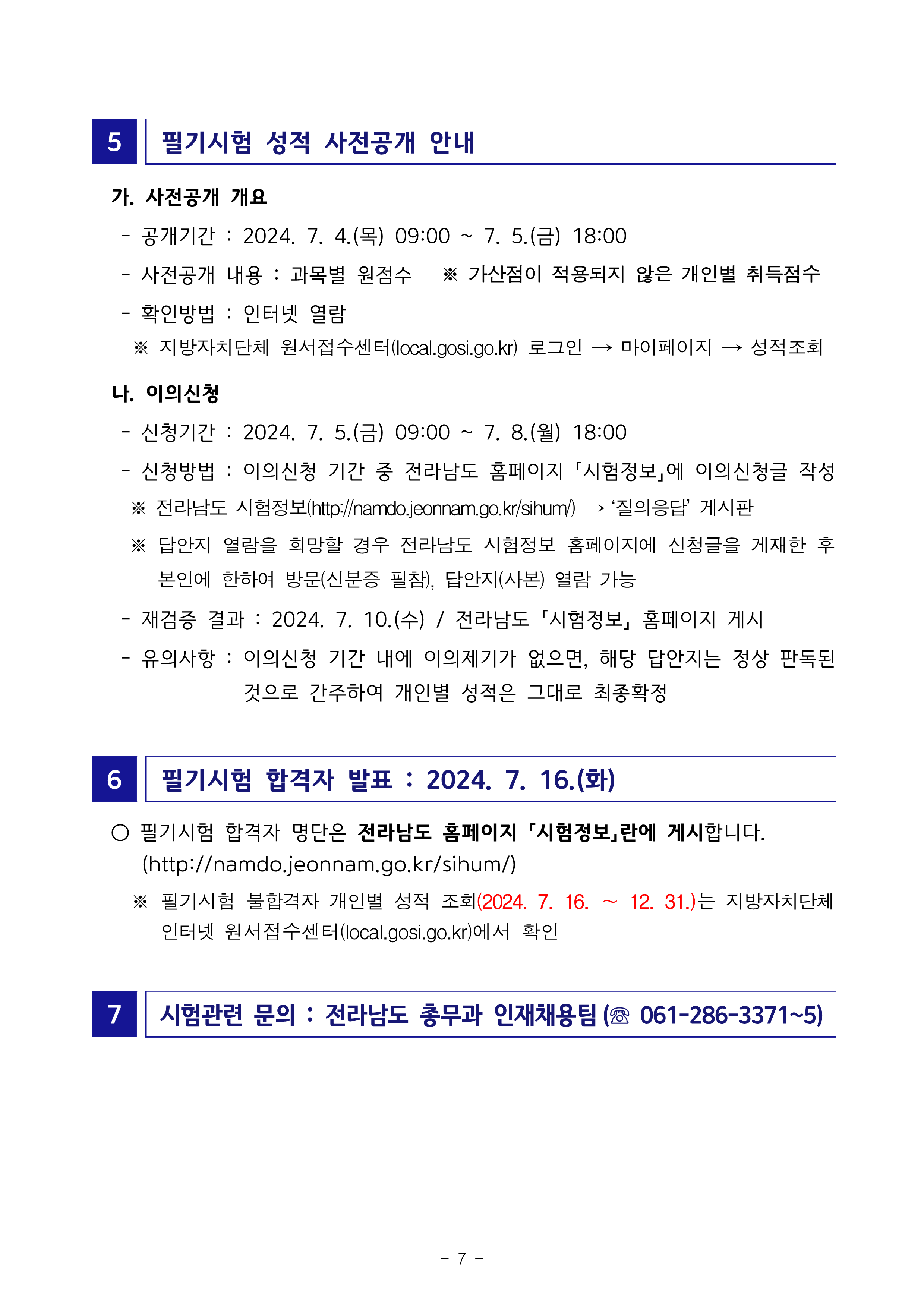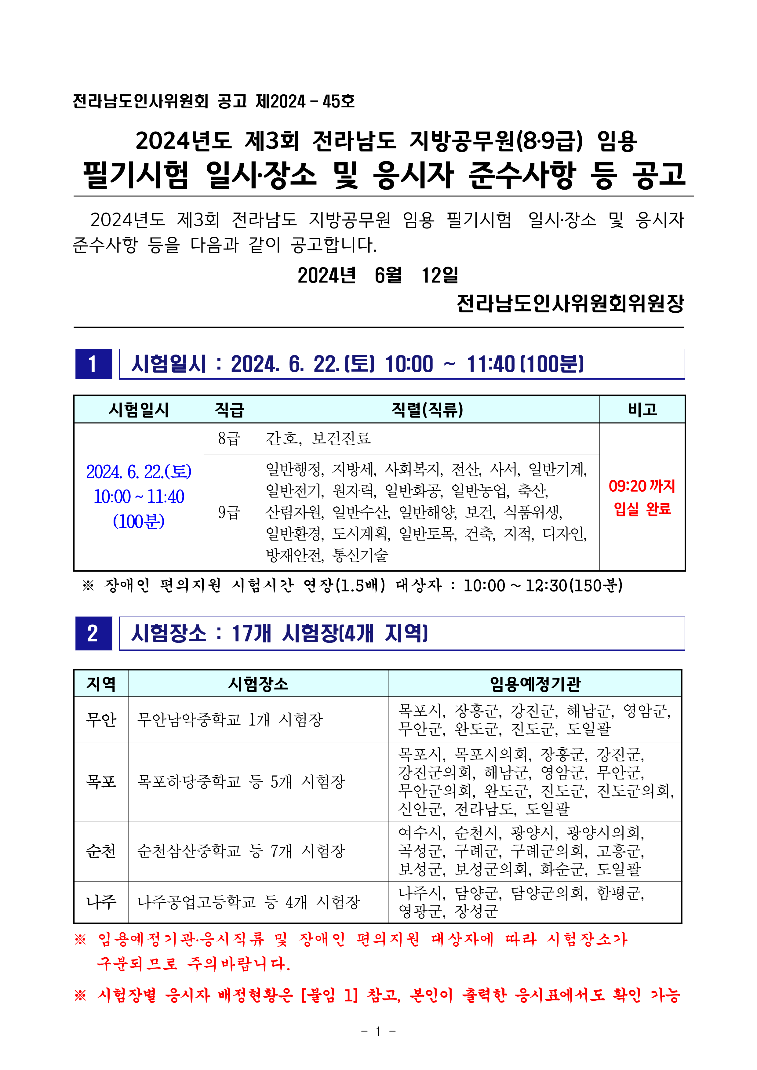 (공고문) 2024년도 제3회 전라남도 지방공무원 임용 필기시험 장소 공고.pdf