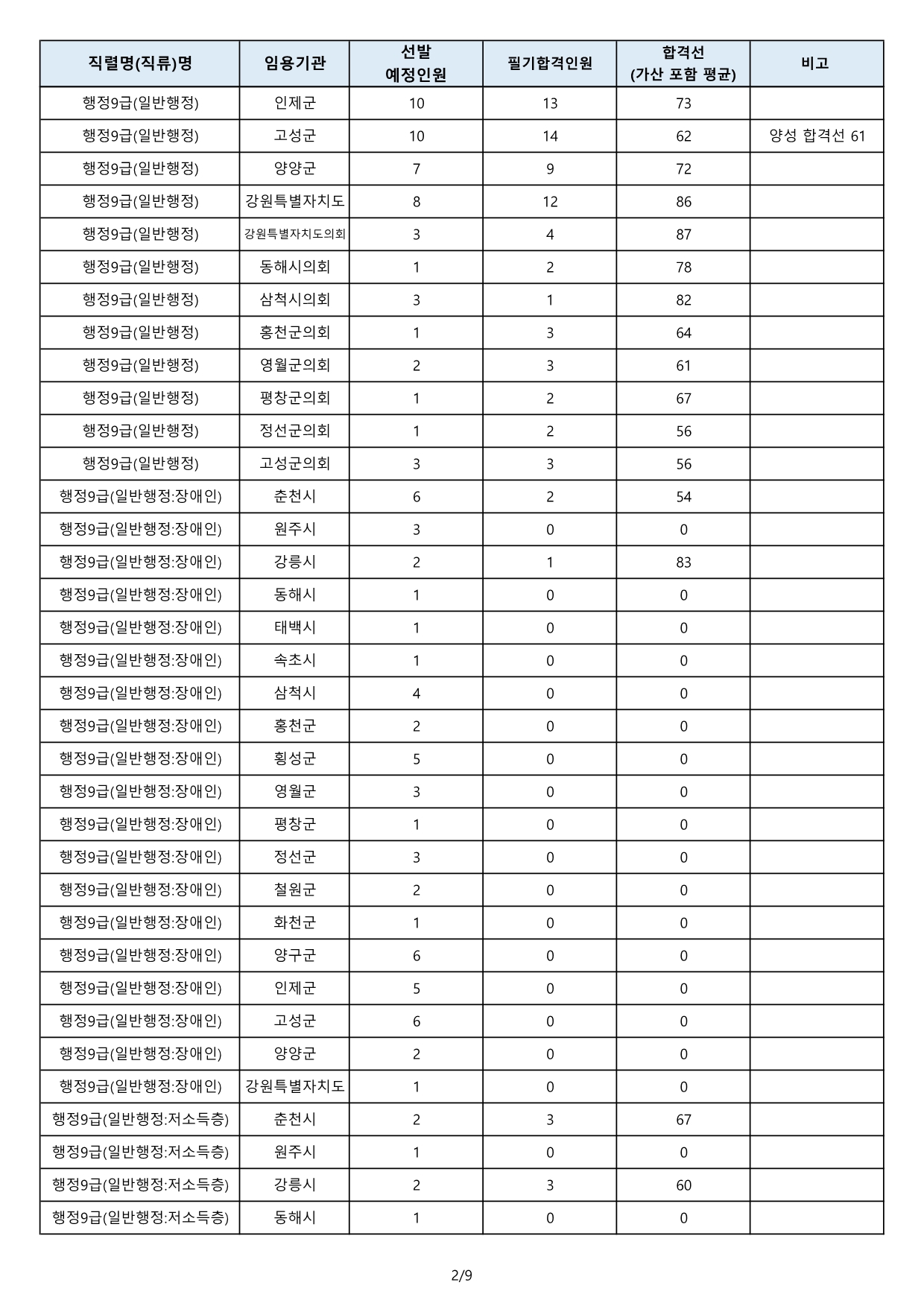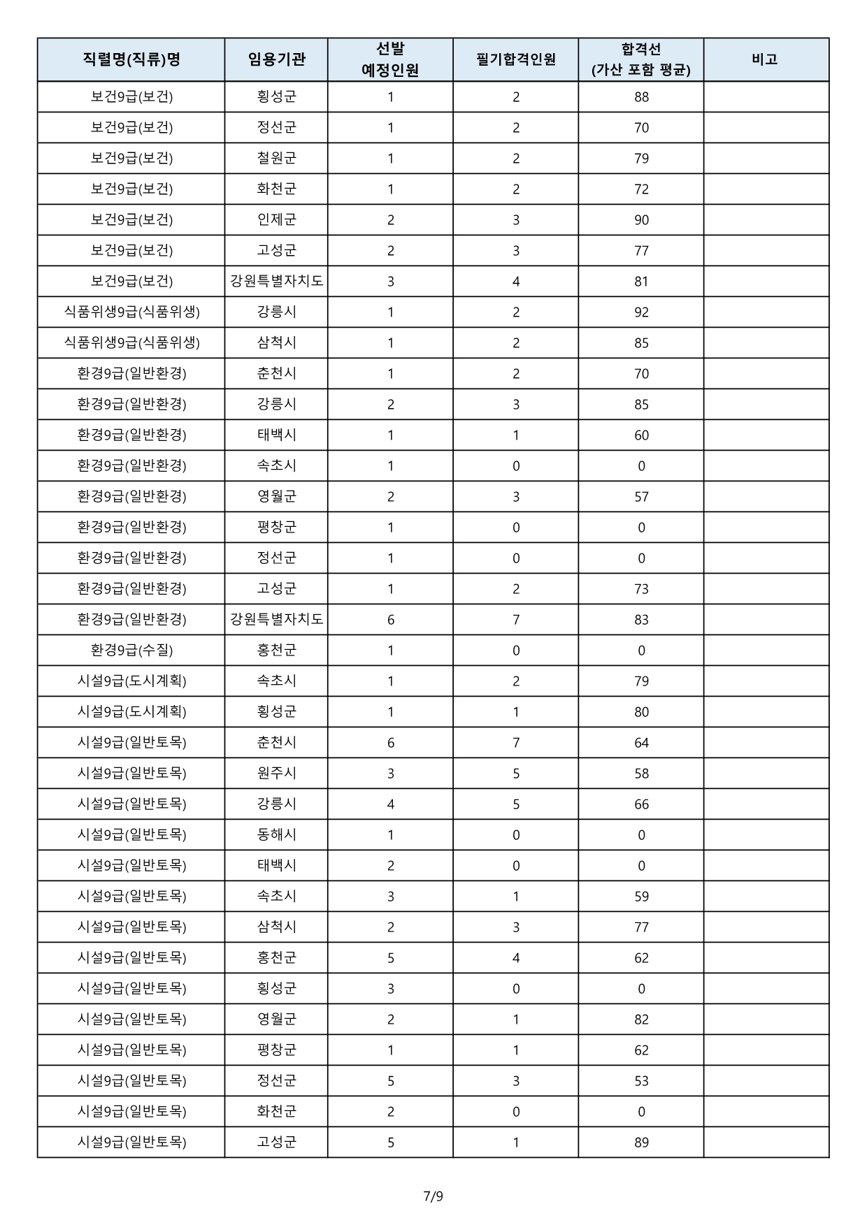 [붙임2] 2024년도 제1회 공무원 임용 필기시험 합격선(공고).pdf