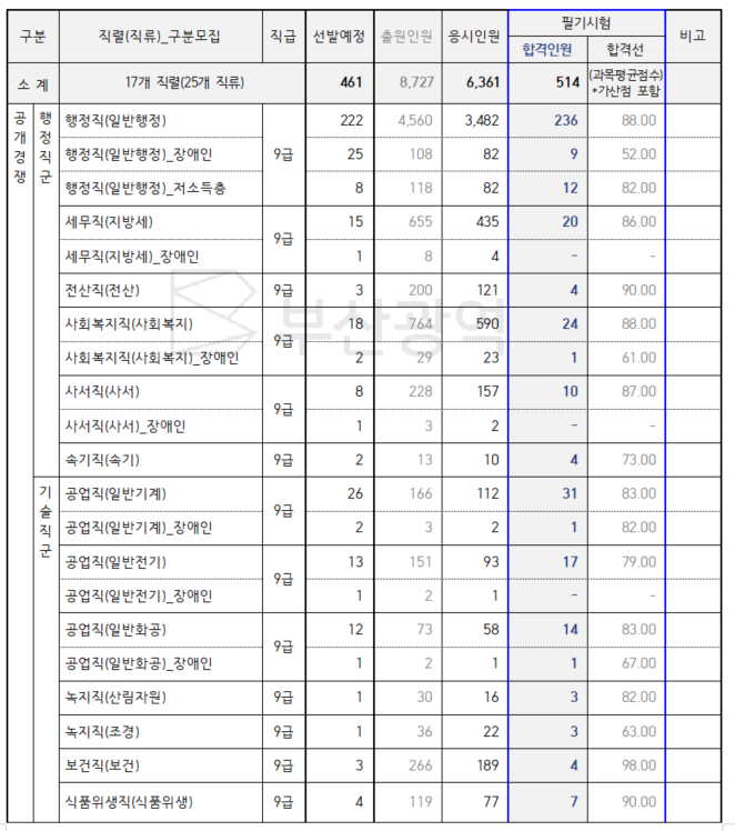 공무원 시험 공고&경쟁률&장소공고&합격선 공무원 시험 지난 데이터(2019~23년) 공무원시험 다...
