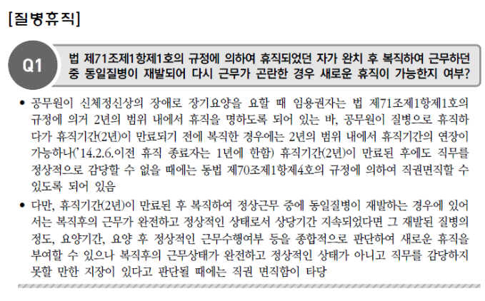 (1) 질병휴직(법 제71조 제1항 제1호, 공무원임용규칙 제1절)