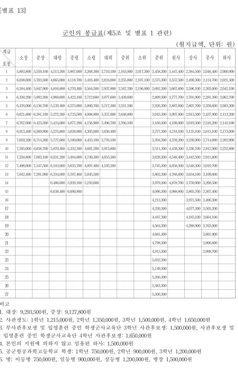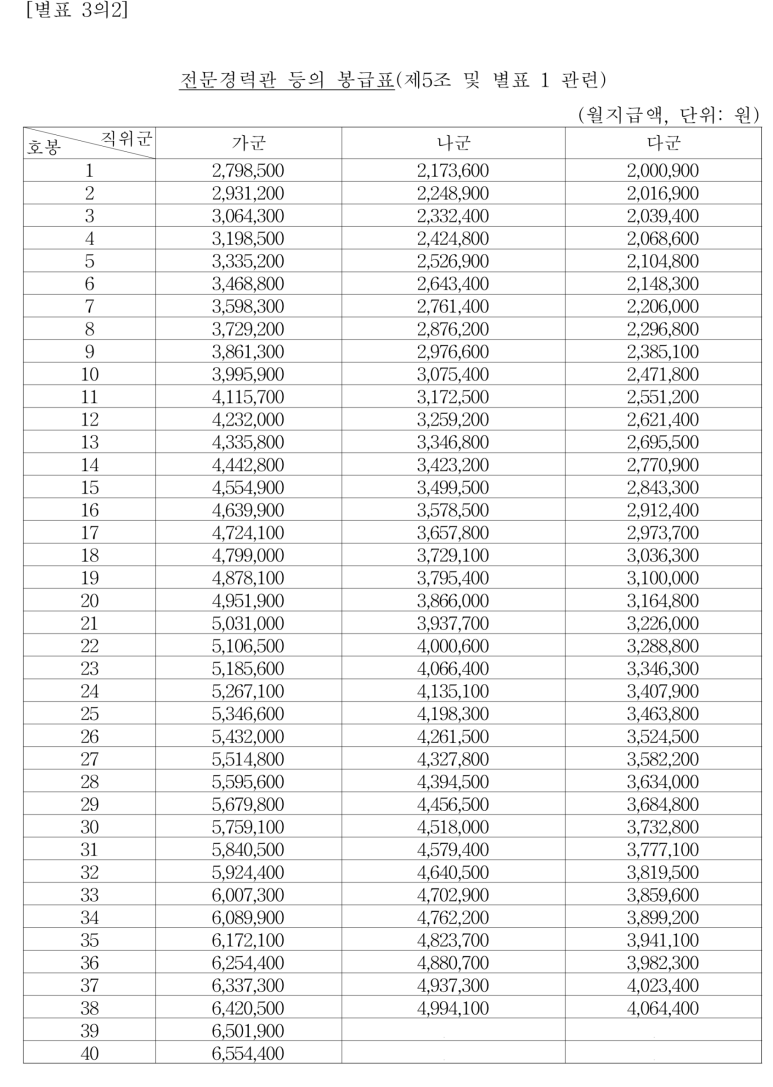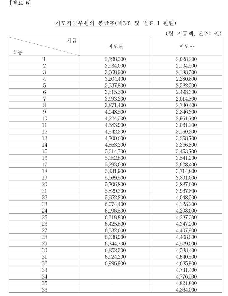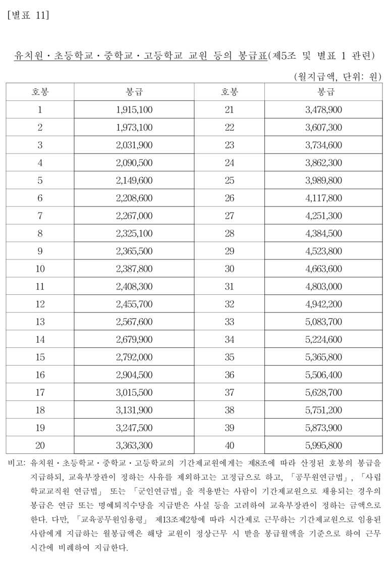 국립대학 교원 등의 봉급표(제5조 및 별표 1 관련)