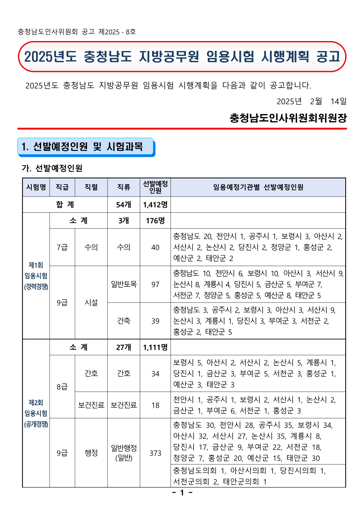 2025년도 충청남도 지방공무원 임용시험 시행계획 공고문.hwpx