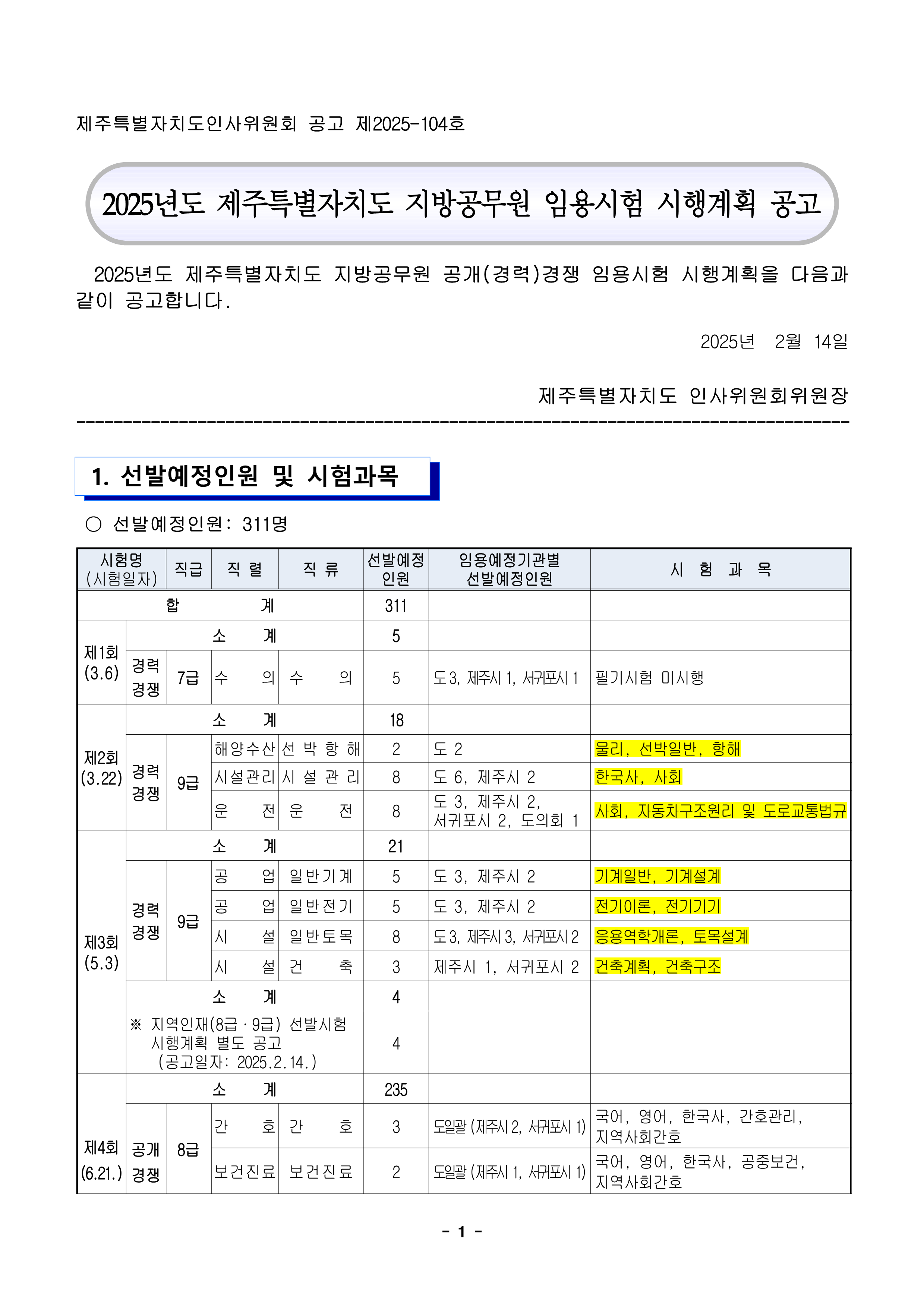 (공고) 2025년도 제주특별자치도 지방공무원 임용시험 시행계획 공고_배포_최종.pdf
