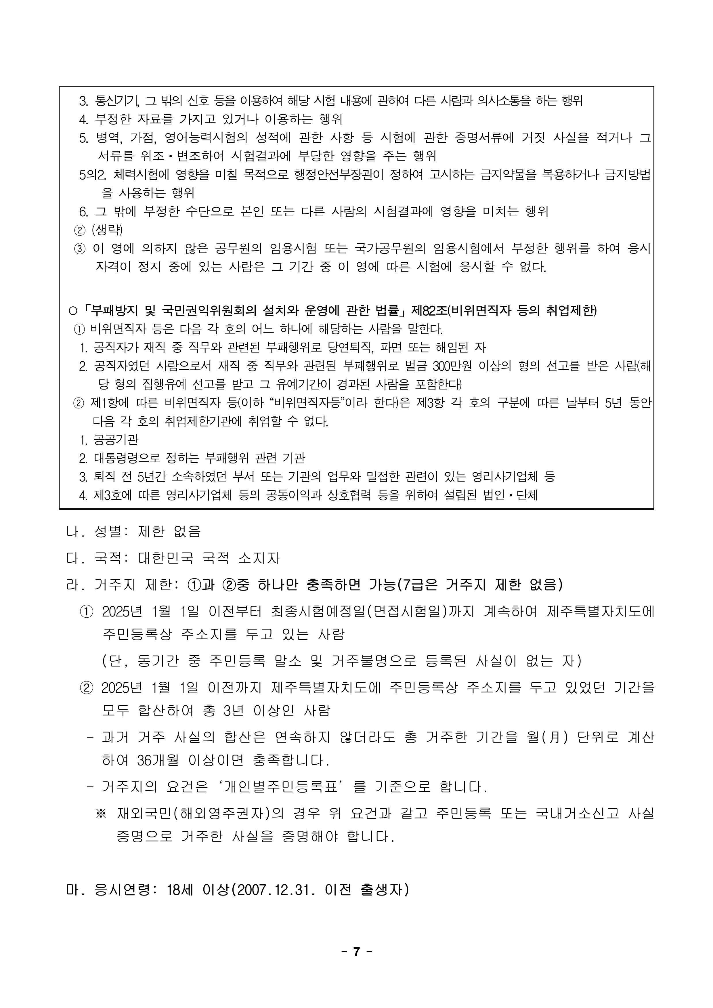 (공고) 2025년도 제주특별자치도 지방공무원 임용시험 시행계획 공고_배포_최종.hwp