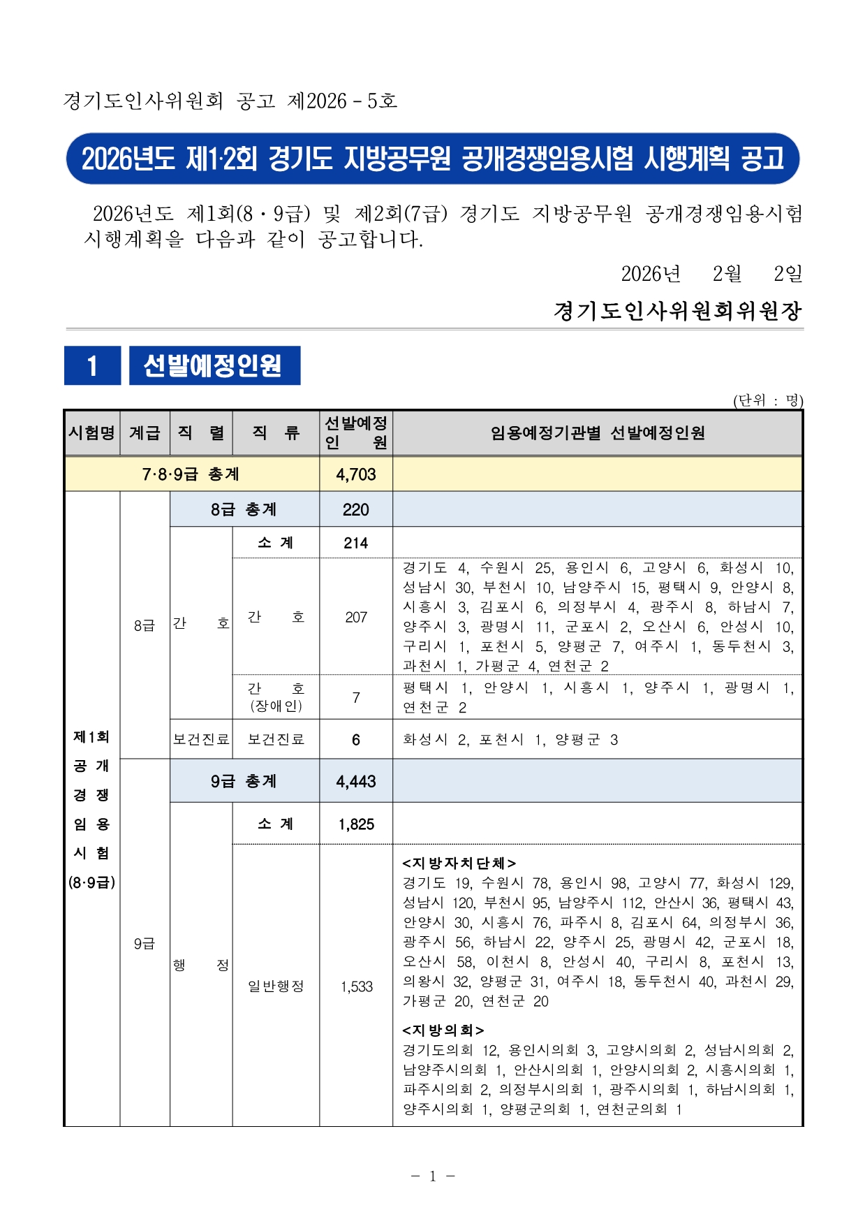 (공고) 2026년도 제1_2회 경기도 지방공무원 공개경쟁임용시험 시행계획 공고문 등.zip
