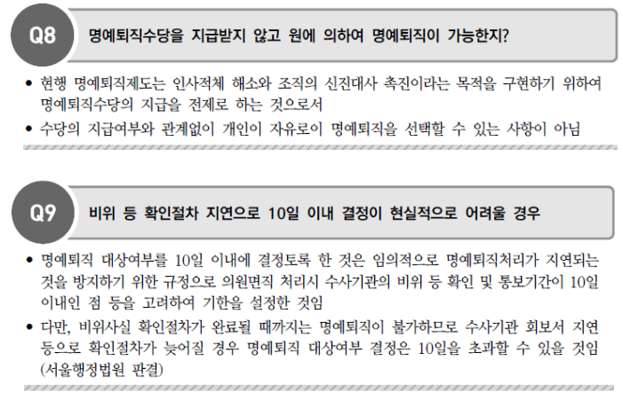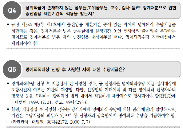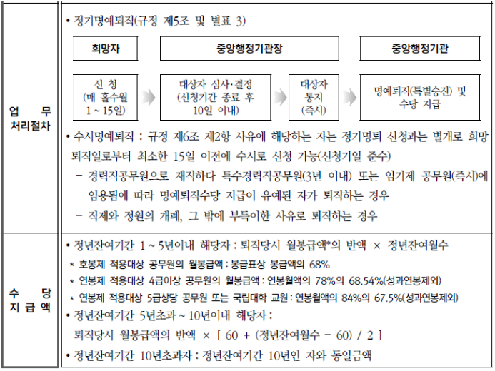 ☞ 명예퇴직수당 지급이 결정된 자라 하더라도 명예퇴직일 전에 상기 사유가 발생하면 명예퇴직수당 지급 결정은 취소됨