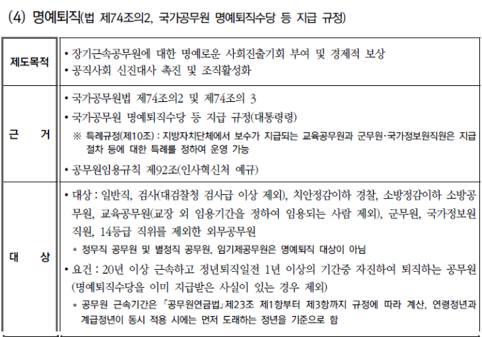 예산상 제약 : 각 기관은 확보된 예산범위에서 명예퇴직 대상자를 선정하며, 예산부족