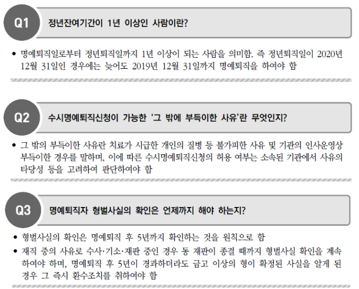 ○ 명예퇴직자 형벌사실의 확인(규정 제9조의5)